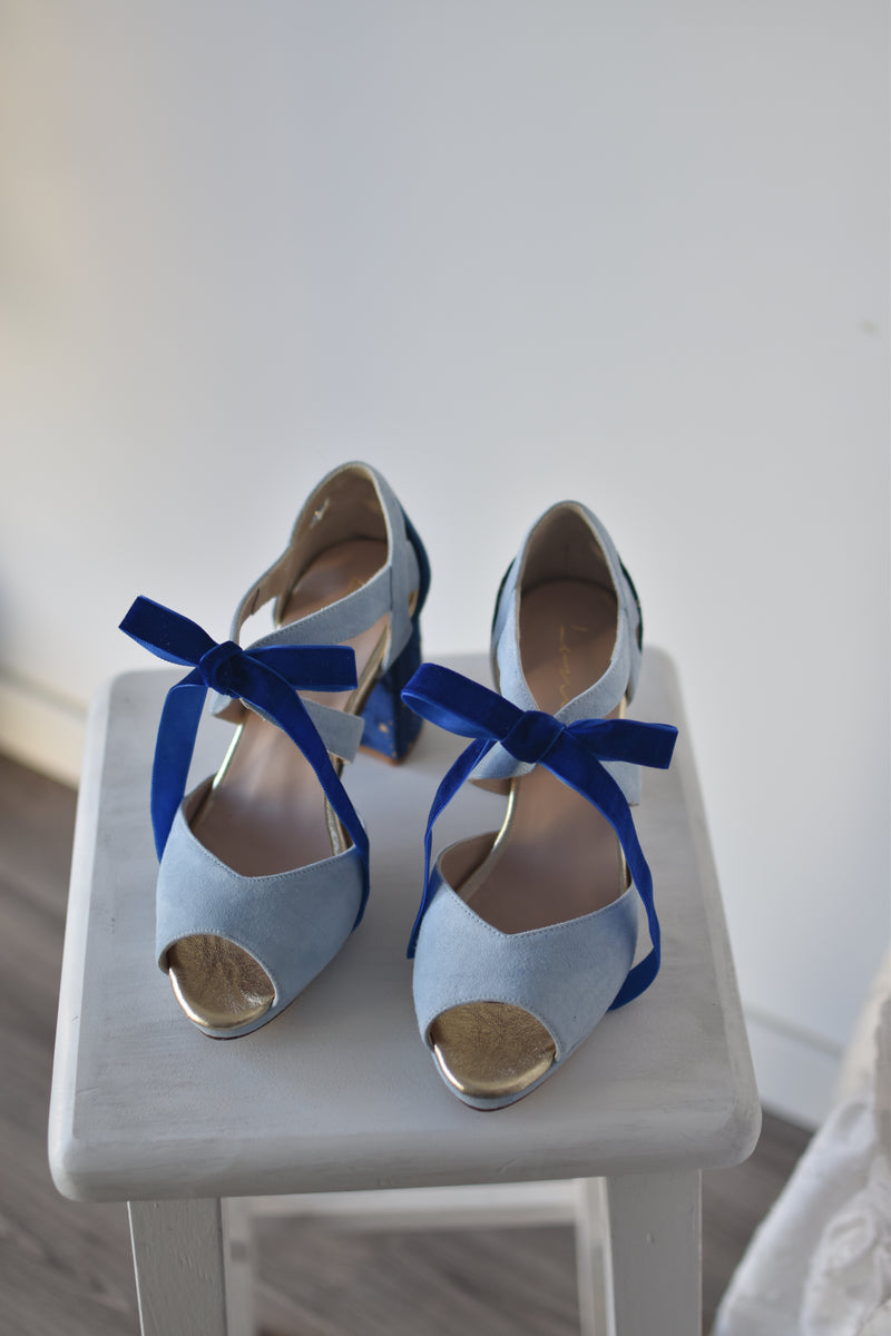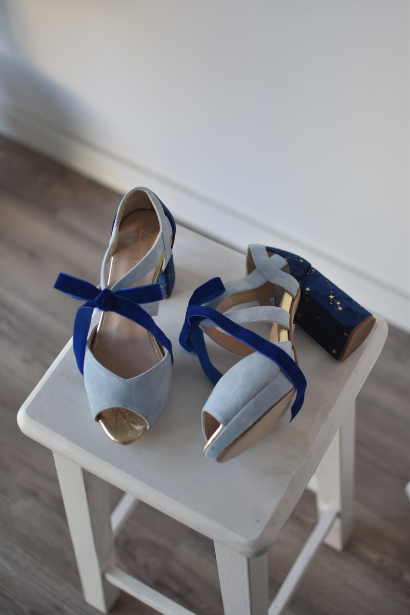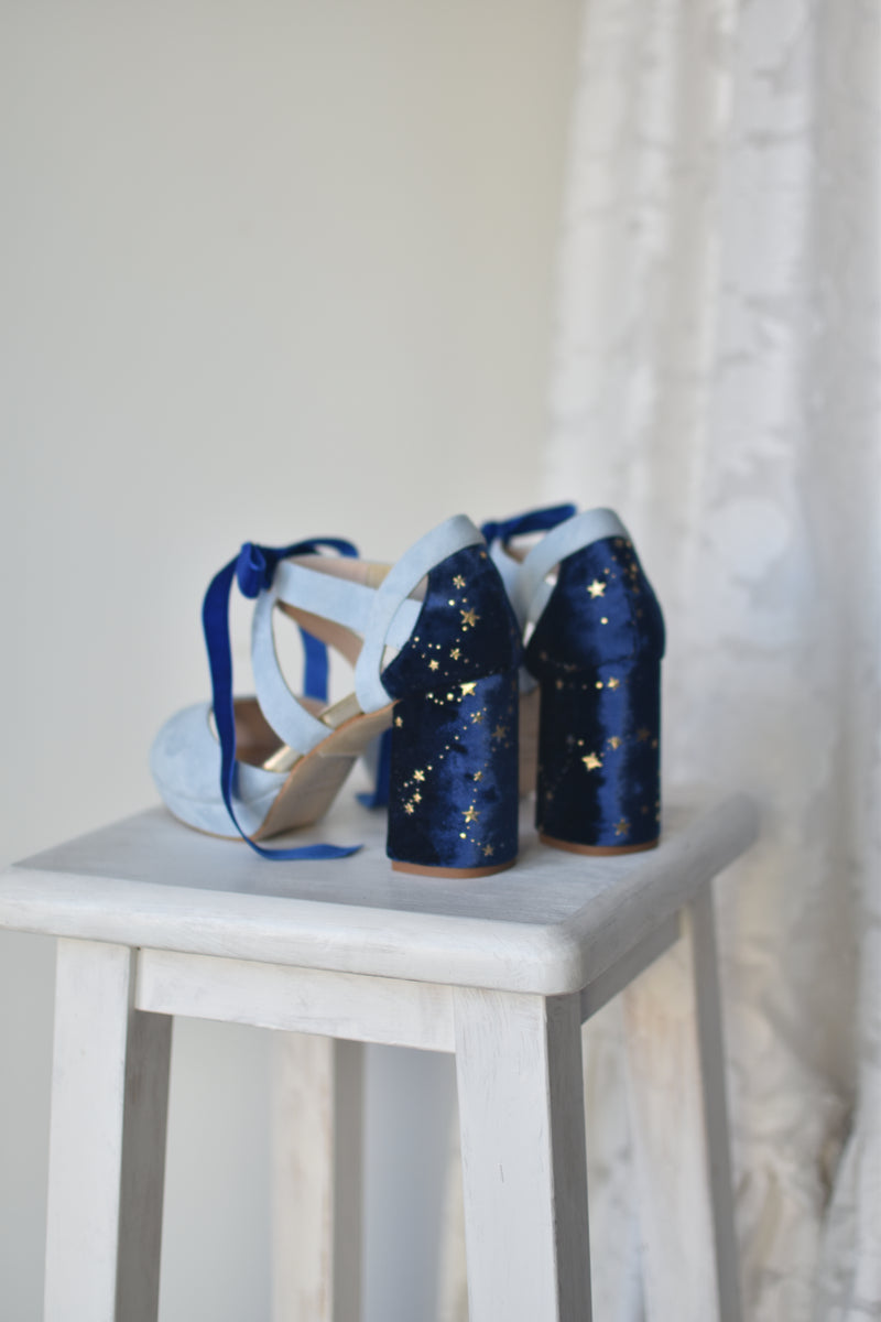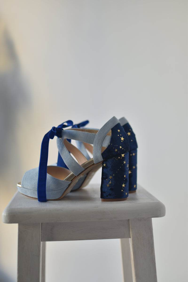 · Material tacón: terciopelo azul oscuro estrellas constelación